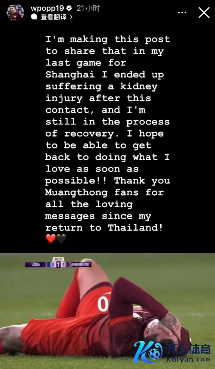 我发布这个帖子是为了共享我在海港的临了一场比赛中,此次碰撞后,我的肾脏受到了毁伤体育集锦,当前我仍在收复之中。但愿能早日且归作念我方心爱的事。